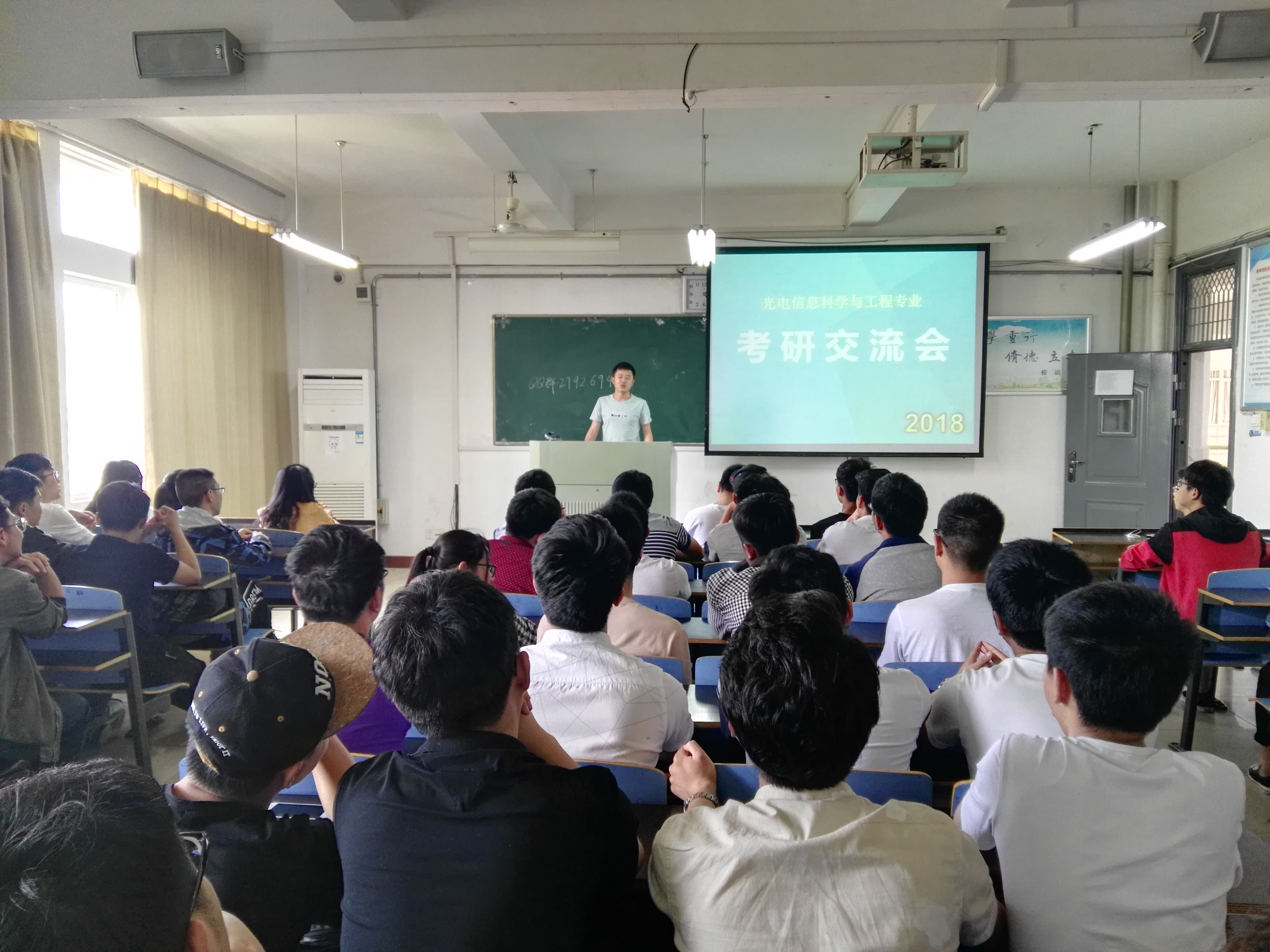 会议伊始,周晶晶介绍了自己的考研经历,让学生初步认识考研历程,她围绕着考研报名须知、考研难不难、考研必备条件、考研院校选择四块主题进行了详细的解释,并强调考研应该明确目标,做好自我定位,提早准备,合理安排复习时间。随后,光电专业已考取研究生的袁政、张曼、史敏敏、吴洋、葛本安等同学结合自己的考研经历详细讲解了各科的复习策略以及在备考期间的注意事项,包括考研信心的树立、考研计划的制定、备考心态的调整、生活作息的安排、专业方向的选择等各方面心得。活动最后进入了互动环节,针对同学们提出的不同问题,在场的老师和已录取学生一一解答,给出了相应的建议与指导。整个交流会气氛和谐,掌声不断,同学们积极踊跃的提问与学长学姐耐心细致的讲解将现场气氛推入高潮。