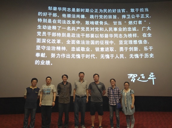 电影《邹碧华》通过艺术创作手法,向观众再现了邹碧华同志光辉而短暂的一生,邹碧华同志是新时期公正为民的好法官、敢于担当的好干部,邹碧华的理想追求、奉献精神和司法改革实践在影片中得到了生动诠释。他的坚守与担当、创新与进取,都深深激励着我们。正如习近平总书记所说,“邹碧华同志敢啃硬骨头,甘当‘燃灯者’,生动诠释了一名共产党员对党和人民事业的忠诚”。