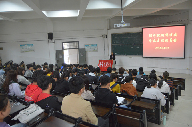 2019年10月14日,理学院召开迎评促建学风建设动员会。院党总支书记梅红,副院长孙西超,辅导员及全体学生班干部参会。会议由孙西超主持。