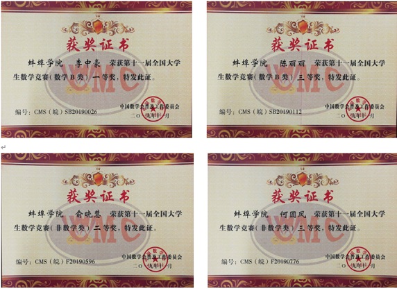 这次竞赛,2016级数学与应用数学专业的李中豪荣获数学类一等奖,2017级数学与应用数学专业的陈丽丽荣获数学类三等奖,2017级俞晓慧荣获非数学类二等奖,2017级何圆凤荣获非数学类三等奖。(文/鲍宏伟)