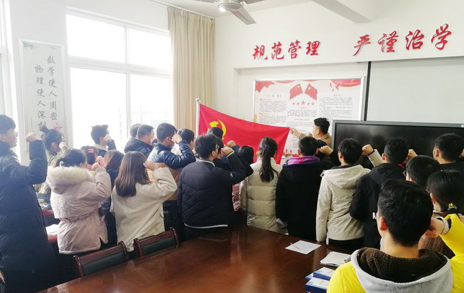 会上,学生党支部向全体党员通报了学生党支部2019年工作总结与2020年工作计划、理论学习计划和党日活动计划情况,并公开2019年党费收缴情况,并广泛征求广大党员对支部工作的意见与建议,充分发挥广大党员参与支部决策的民主权利,为党支部建设与发展出谋划策。会上还传达了《关于同意接收朱立冬等342位同志为中共预备党员的通知》(院组字[2019]30号)和《关于同意接收徐梦可等140位同志按期转为中共正式党员的通知》(院组字[2019]31号)两份文件。最后,举行了新党员入党宣誓、老党员重温誓词活动。党员们面对党旗举起右手庄严宣誓,标志着新党员梦寐以求的愿望得到实现,同时也深切感受到肩负的责任,一定不辜负组织的期望,时刻用党员的标准严格要求自己,工作更加积极主动,争做合格党员。