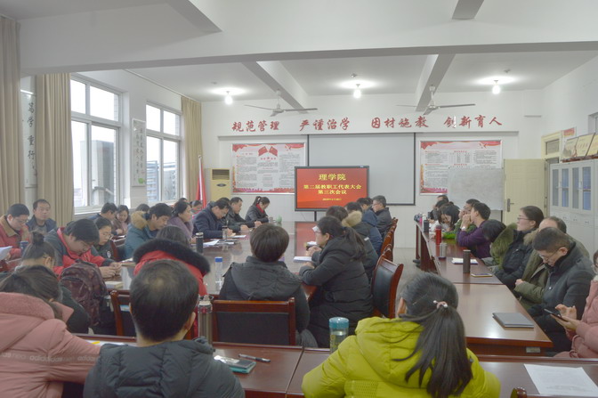 为进一步推进学院民主建设,实现学校科学发展,根据《安徽省高等学校教职工代表大会工作规程》《蚌埠学院教职工代表大会章程》等有关规定,2020年1月10日下午,理学院第二届教职工代表大会第三次会议在院会议室隆重举行,会议由理学院工会分会主席梅红主持,全体教师代表参加了会议。