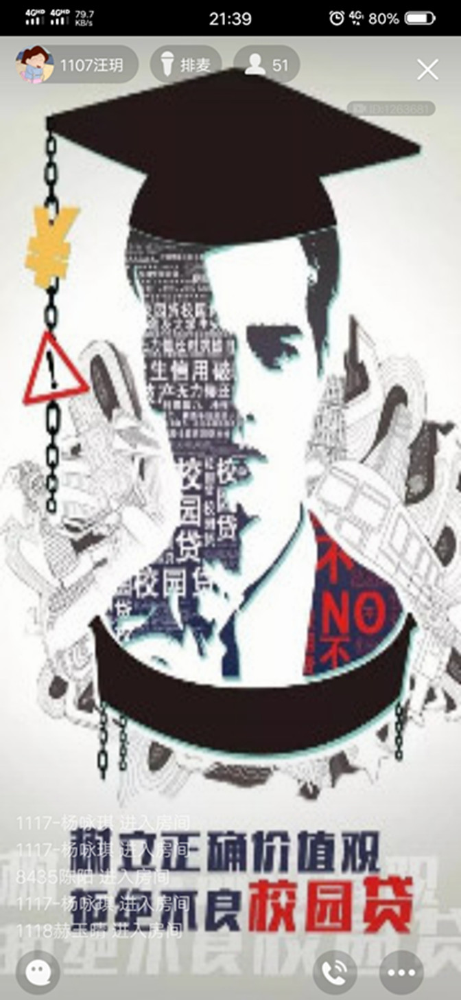 会议的开始,汪玥以美国的感恩节为例,向同学们介绍到感恩的重要性,并指出感恩不仅是对父母、师长、社会的感恩,还有对生命和自然的感恩。并向同学们讲述到正是因为感恩的存在,生活中处处充满美好与希望。其次,讲述了校园贷是什么,它指的是在校大学生向各类借贷平台借钱的行为,并指出,教育部与银监会联合于2016年4月发布了《关于加强校园不良网络借贷风险防范和教育引导工作的通知》,明确要求各高校建立校园不良网络借贷日常监测机制和实时预警机制,同时,建立校园不良网络借贷应对处置机制。2017年9月6日,教育部发布明确取缔校园贷款业务,任何网络贷款机构都不允许向在校大学生发放贷款。同时,也给同学们罗列出非法校园贷的类型、校园贷的危害以及防范措施,预防同学的上当受骗。最后汪玥指出,校园贷百害而无一利,希望同学们不受到校园贷的危害,平安度过快乐的大学生活。