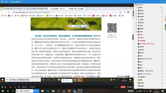 为了能够更好的强化宣贯时效,本次活动由各班团支书主导开展主题班会,集中学习两会的相关内容,确保能将会议精神落到实处。本次活动通知刚下达,各班团支书就组织相关团干,积极准备主题班课所需的相关资料与视频,各班班级组织的主题团课活动也各不相同。18级材料物理班选择由班长来带领本班学生观看近日以来全国召开关于两会的记者大会,然后根据大会内容学生的疑问进行解释,最后以朗诵演讲稿为结束;19级数学与应用数学二班团支书首先就共青团员的义务和权利,向学生提出要求,通过各种方式,了解党的大政方针,紧接着播放两会期间的特别报道视频,最后总结作为学生应该明确应该做什么和怎么去做才能更好的在社会生活中发挥模范带头作用;19级光电一班分工完成任务,首先由班长提出作为我们党在革命斗争的艰苦岁月中形成的伟大精神和马克思主义中国化的理论结晶,然后由团支书来介绍建设中国特色社会主义的价值,最后由宣传委员来提出两会精神的灵魂——“坚定信念,艰苦奋斗”。