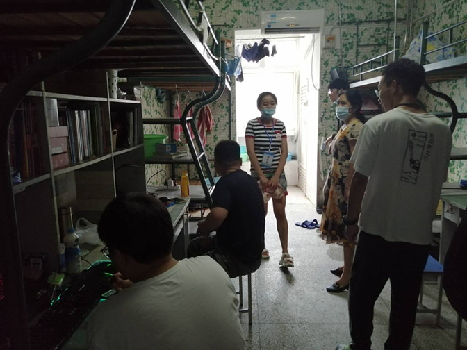 2020年8月29日清晨开始,理学院2019级学生开始有序返校。在西门完成了测温、查验安康码、行李消毒、验证身份等流程后,学生依次有序来到学院报道点,按时上交近14日健康情况监测表及返校承诺,再次测温、核验安康码、行程码和身份信息,领取报到单,前往宿舍办理入住手续。在学生返校报到过程中,理学院党总支书记梅红带领各年级辅导员前往学生宿舍看望学生,了解学生宿舍情况,关心学生在学习和生活上遇到的困难并积极解决。