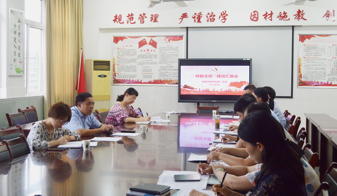 数理学院学生第一党支部书记孙礼俊汇报了按照创建指标体系,遵循“七个有力”建设要求,以提升组织力为重点,着力发挥政治引领、规范党的组织生活、团结凝聚师生、促进学院中心工作等方面的主体作用所开展一系列建设的成绩和特色。学院党政领导介绍了帮扶支部创建工作的有力措施和政策支持,为“样板支部”建设提供了全程指导。数理学院学生第一党支部是安徽省教育厅首批“全省党建工作样板支部”培育建设单位。自从开展“样板支部”建设以来,在学校和学院的正确领导下,开展大量卓有成效的工作,围绕“立德树人”为主线,以特色活动为抓手,有力地提升了党支部战斗堡垒作用和党员先锋模范作用。