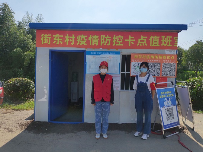 2021级应数一班的董唱唱,在收到家乡招募志愿者的消息后,她毅然报名投入到防疫第一线。在家乡的杨庄镇街东村执勤点,董唱唱每天负责对来往以及途经的非辖区车辆进行劝返,对本村进出的车辆及人员进行登记和体温测量,牢牢把好疫情防控卡点,为村镇居民提供安全保障。