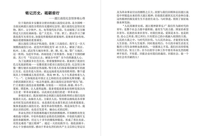 此次活动分为三个部分。一是开展红色主题观影活动,通过对红色影片的观赏唤醒青年学子的爱国热情。二是开展纪念馆、烈士陵园打卡活动,走进红色地标,以实际行动重温革命精神。三是开展“铭记历史,砥砺前行”征文活动,号召数理学院全体学生积极参与,用文字的力量表达对于抗战胜利77周年纪念日的喜悦之情。“最忆卢沟桥事变,日寇嚣张,华北先沦陷,烧杀奸淫豺豹现,南京屠杀民血溅。奋起抗敌燃气焰 ,逐鹿中原,赫赫伟绩显,亿万欢欣伪寇葬,中华圆梦耻为鉴。”一首《蝶恋花》展现了抗日战争的艰险与倭寇所犯下的种种恶行,同时也表达了对这来之不易的胜利所感到的欣喜与震撼之情。
