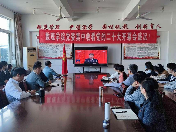 数理学院党委班子全体成员、全体科级干部、各党支部书记、全体学生党员、团学骨干、民主党派教师代表、民族学生代表100余名党员和师生代表参加了集中收看。各党支部以“党员活动日”形式,组织支部党员采取集中和分散的形式,第一时间组织了收看。(撰稿:姚莹;编辑:高慧;审核:杨安升)