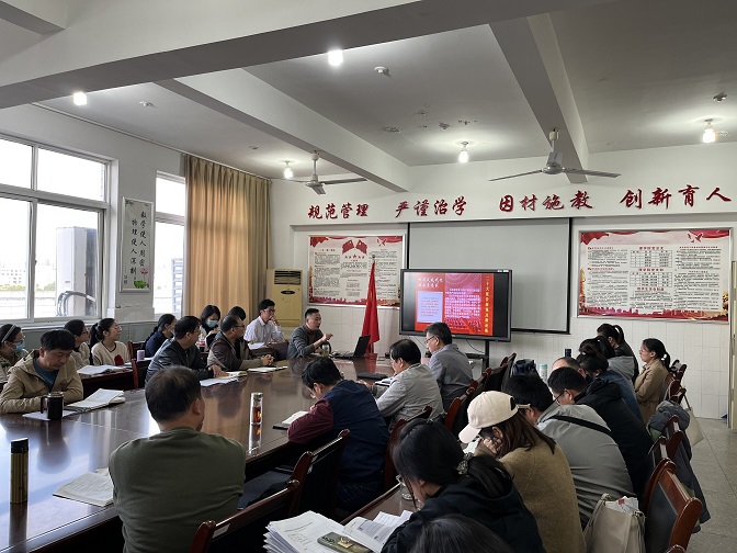 2022年10月25日下午,数理学院以二级中心组扩大学习会的形式带全体党员和教职工同步,集中专题学习党的二十大报告。学习会上,党委副书记杨安升以“深入学习宣传贯彻党的二十大精神”为题为全体党员和教职工上了专题党课。