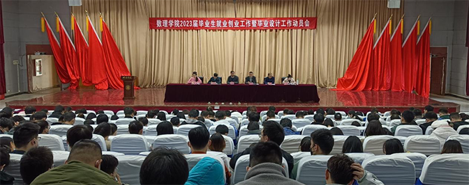 为贯彻落实全国、全省2023届普通高校毕业生就业创业工作网络视频会议精神,贯彻落实学校2023届毕业生就业创业工作部署,扎实做好2023届毕业生就业创业工作及毕业生相关工作,11月24日下午,数理学院在学术报告厅召开2023届毕业生就业创业工作暨毕业设计工作动员会。数理学院党政领导班子、毕业班辅导员和全体2023届毕业生参加了会议。数理学院党委副书记孙礼俊主持会议。