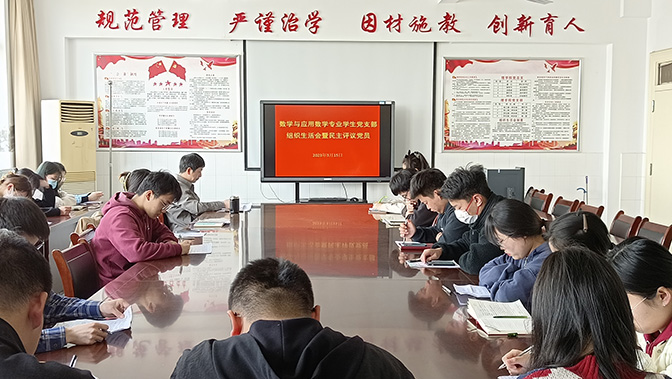 为深入学习贯彻党的二十大精神,积极落实上级党组织文件精神要求,数理学院数学与应用数学专业学生党支部于3月15日中午在重行楼504召开了2022年度组织生活会,开展了民主评议党员活动。支部全体党员参加了本次会议,会议由支部书记姚莹主持,学院党委副书记孙礼俊到会指导点评。