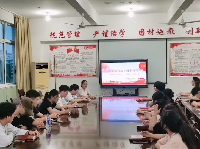 为纪念中国人民抗日战争暨世界反法西斯战争胜利78周年,弘扬抗战精神,激发奋进力量,蚌埠学院数理学院团总支于9月3日晚在重行楼504召开了“纪念中国人民抗日战争胜利78周年”座谈会。会议由团总支书记李莉主持,各班班长、团支书和学生党员参会。