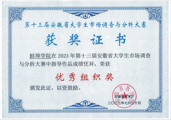 蚌埠学院自2018年起,连续5年积极参加全国大学生市场调查与分析大赛。相关部门高度重视、大力支持,组织校级赛事开展预选,校赛由教务处主办,经济与管理学院、数理学院共同承办,参与人数近七百人,指导老师三十余人。比赛历时8个月,赛事组织有序,从筹备到实施,校赛、省赛,每一个环节都充满挑战。参赛学生与指导教师以饱满的热情投入备战,克服各种困难和挑战,以赛促学、以赛代练,在备赛过程扎实掌握专业技能、锻炼团队协作能力,收获颇丰。