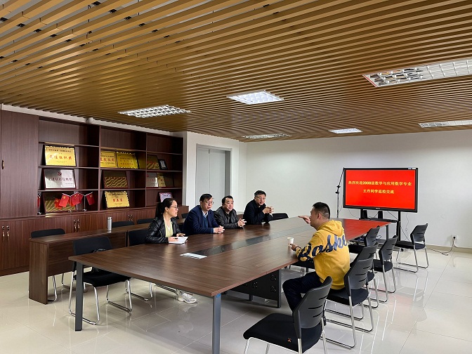 岁月不居,时节如流。为感谢老师的谆谆教诲,在学业上的辛勤栽培和耐心教导,数理学院2008级数学与应用数学专业优秀毕业生王丹于4月9日回母校看望老师,表达对母校和老师的感恩之情,数理学院院长孙西超,党委副书记李明等老师同王丹同学进行了交流。