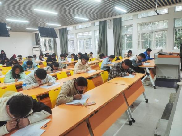 本次竞赛为个人赛,采用闭卷笔试形式,答题时间是90分钟。试题内容涵盖了数理基础知识、逻辑推理、实际应用等多个方面,主要测试学生的数理知识掌握程度和逻辑思维能力,赛题在坚持科学性和灵活性的同时,又有一定的量和一定的难度。比赛现场,同学们展现出了高度的专注和热情,他们全神贯注地审题、计算,争分夺秒地寻找答案。笔尖在试卷上快速舞动,纸与笔的摩擦声此起彼伏,思想的碰撞,点亮了智慧的火花。