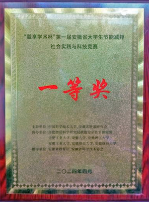 第一届安徽省大学生节能减排社会实践与科技竞赛由中国科学技术大学、安徽省能源研究会主办。竞赛主题为节能减排、绿色能源,旨在增强全省高校学生节能减排意识、科技创新意识和团队协作意识,提高学生的创新设计能力、工程实践能力和社会实践调查能力,推动节能减排技术的研发和成果转化。本届比赛共有来自全省32所高校的1199件作品参赛。经初评,共有147件作品推荐入围决赛,我校作品《一种基于“绿电+储能”系统的多功能除尘太阳能路灯装置》最终在众多作品中脱颖而出荣获一等奖。