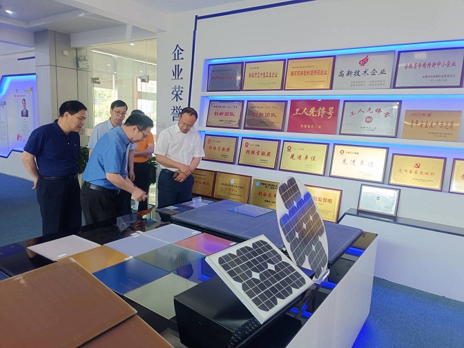 安徽天柱绿色能源科技有限公司总经理卢玉发对孙艳辉一行到访表示热烈欢迎,陪同孙艳辉一行参观了监控显示大厅和产品展示厅,并主持召开校企合作与岗位需求招聘座谈会。卢玉发详细介绍了公司成立背景、公司发展、人才需求等方面情况,对与蚌埠学院多年合作取得的成果表示感谢,希望双方在光伏等绿色能源领域开展深度合作。