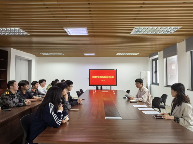 为切实将诚信教育融入校园文化建设,引导学生深化对诚信内涵的理解,10月11日,数理学院在理工楼501会议室举办了以“诚以为本、信以立身”为主题的辩论赛。学院党委副书记李明、辅导员喻俐、杨子希、祁明明担任评委。