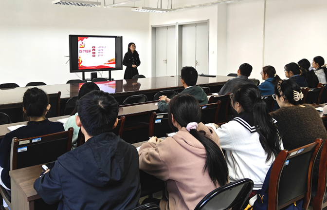10月22日中午,数理学院党委委员、副院长王莉在理工楼南楼516会议室,为学院分党校第四十一期入党积极分子讲授专题党课,重点围绕发展党员工作流程与本科教育教学审核评估期间的先锋担当展开深入讲解,为学员们明晰入党路径、强化责任意识提供精准指引。