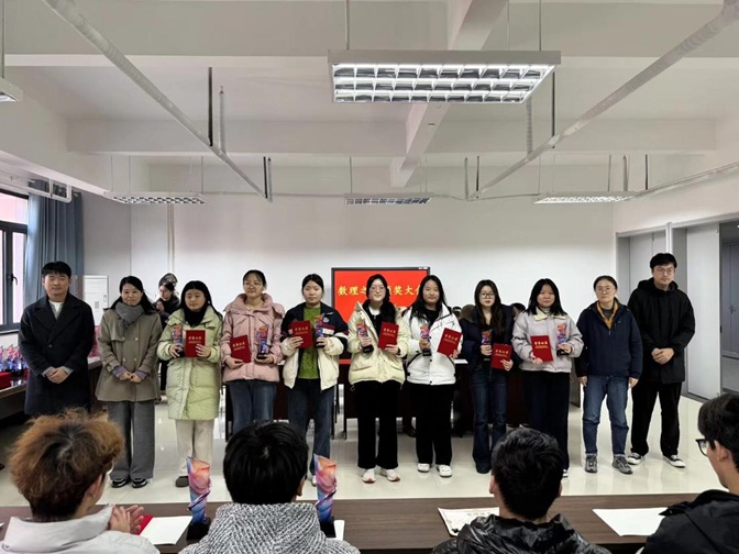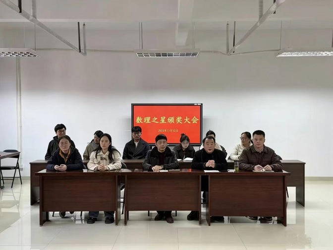 12月10日12:30分理工楼516会议室灯光璀璨、掌声如潮,数理学院2025年度“数理之星”颁奖典礼在此隆重举行。学院党委书记孙礼俊、副院长王莉、党政办主任、学工组长、团委书记、教学秘书、全体辅导员和教师代表出席,典礼由党委副书记李明主持。